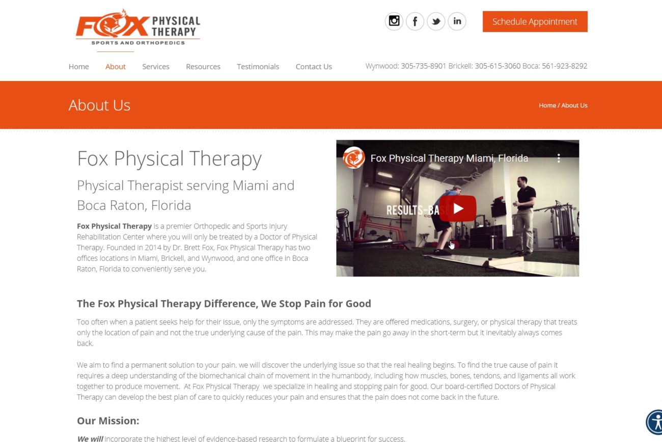 Fox Physical Therapy is a premier Orthopedic and Sports Injury Rehabilitation Center where you will only be treated by a Doctor of Physical Therapy. Founded in 2014 by Dr. Brett Fox, Fox Physical Therapy has office locations in Miami, Brickell, Wynwood, and Boca Raton, Florida.