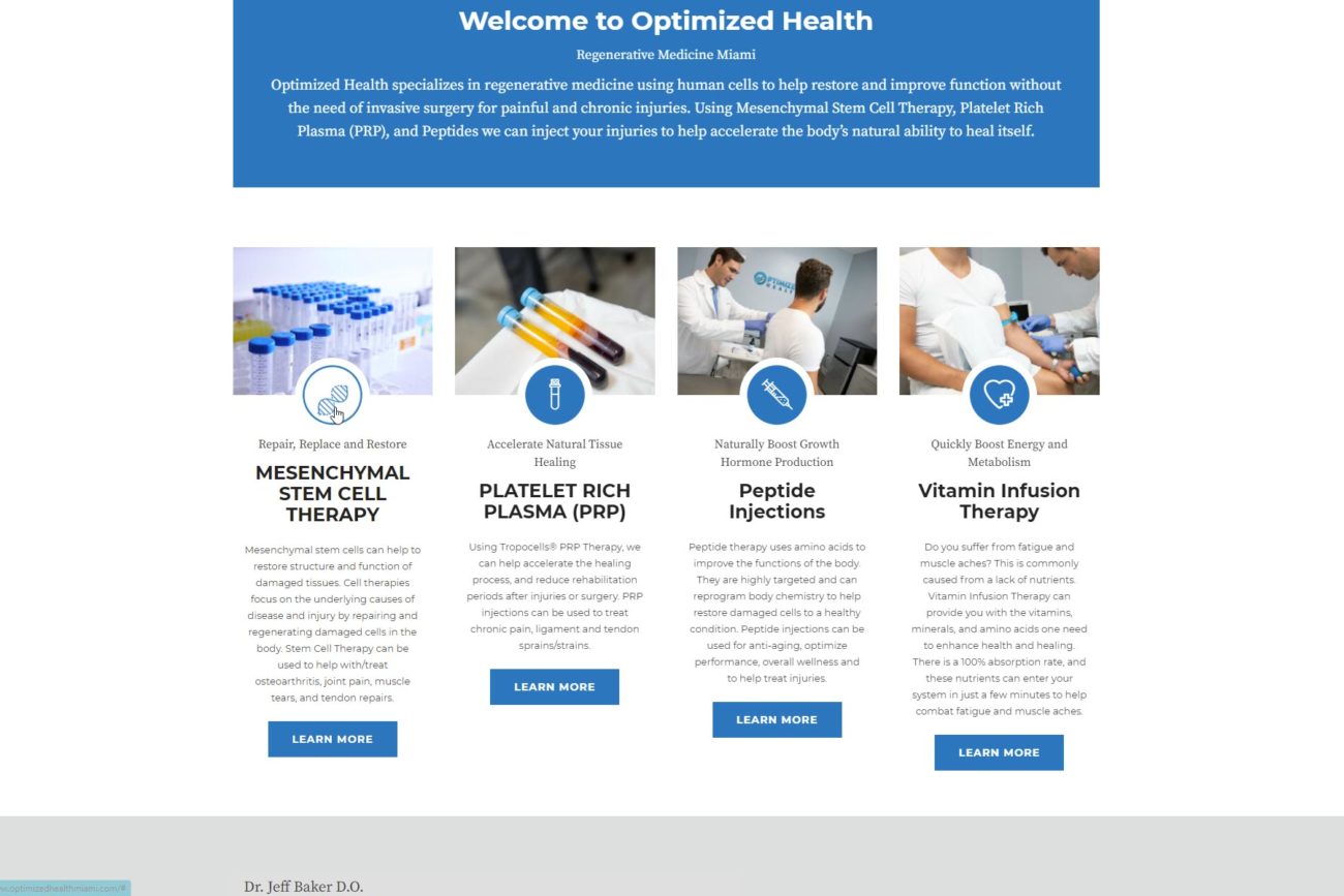 Optimized Health specializes in regenerative medicine using human cells to help restore and improve function without the need of invasive surgery for painful and chronic injuries. Using Mesenchymal Stem Cell Therapy, Platelet Rich Plasma (PRP), and Peptides we can inject your injuries to help accelerate the body’s natural ability to heal itself.